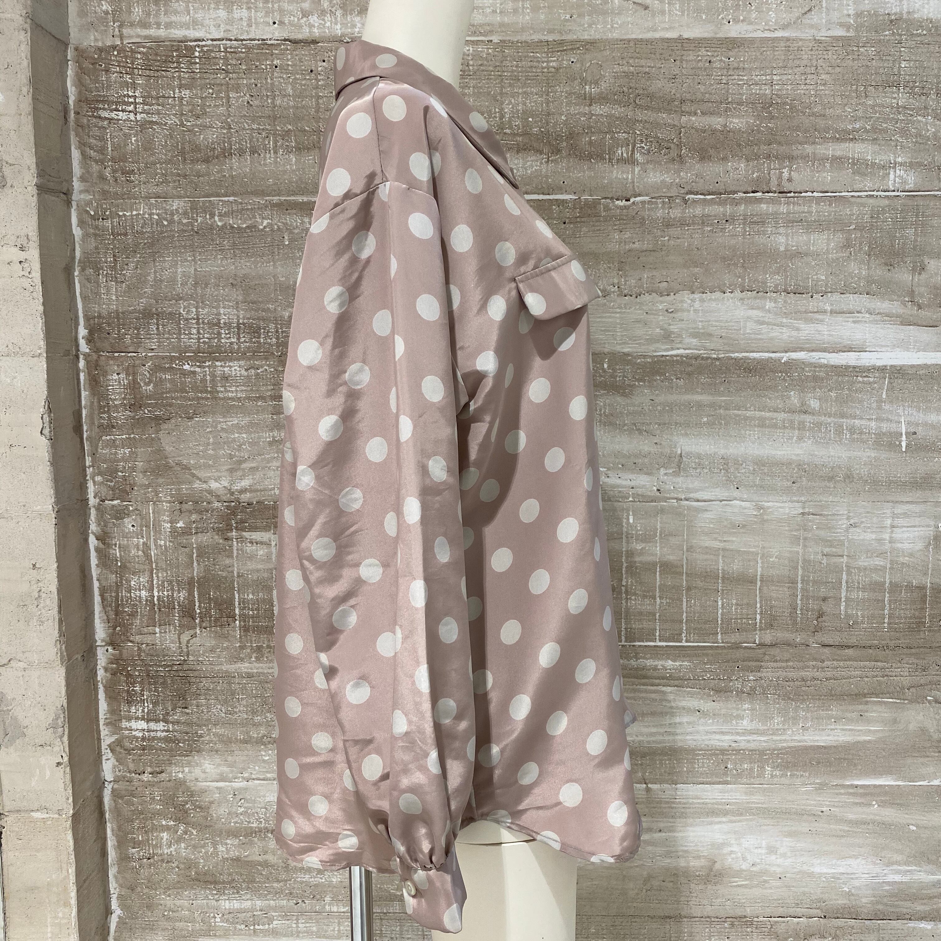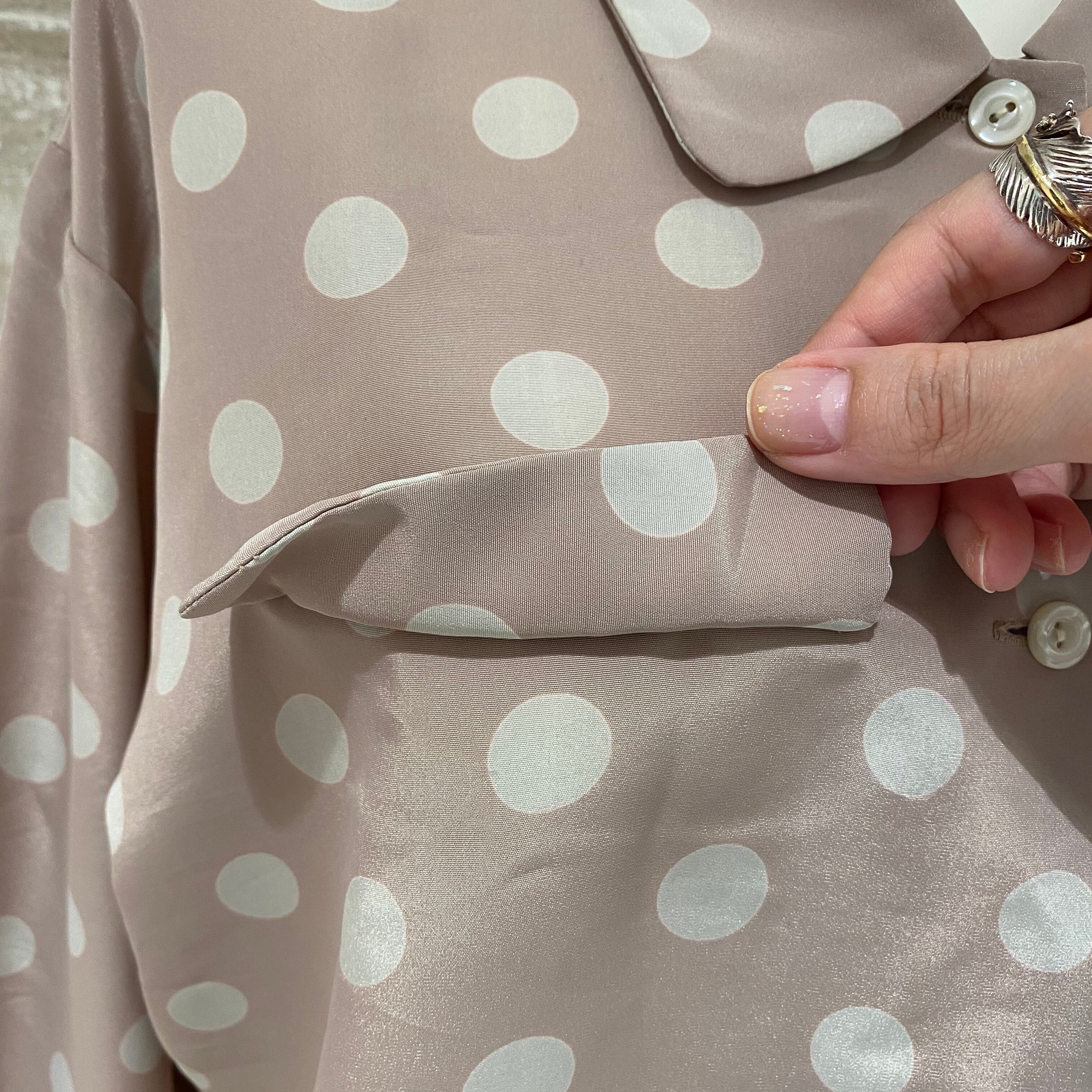 柔らかいピンクベージュのベースに水玉柄が