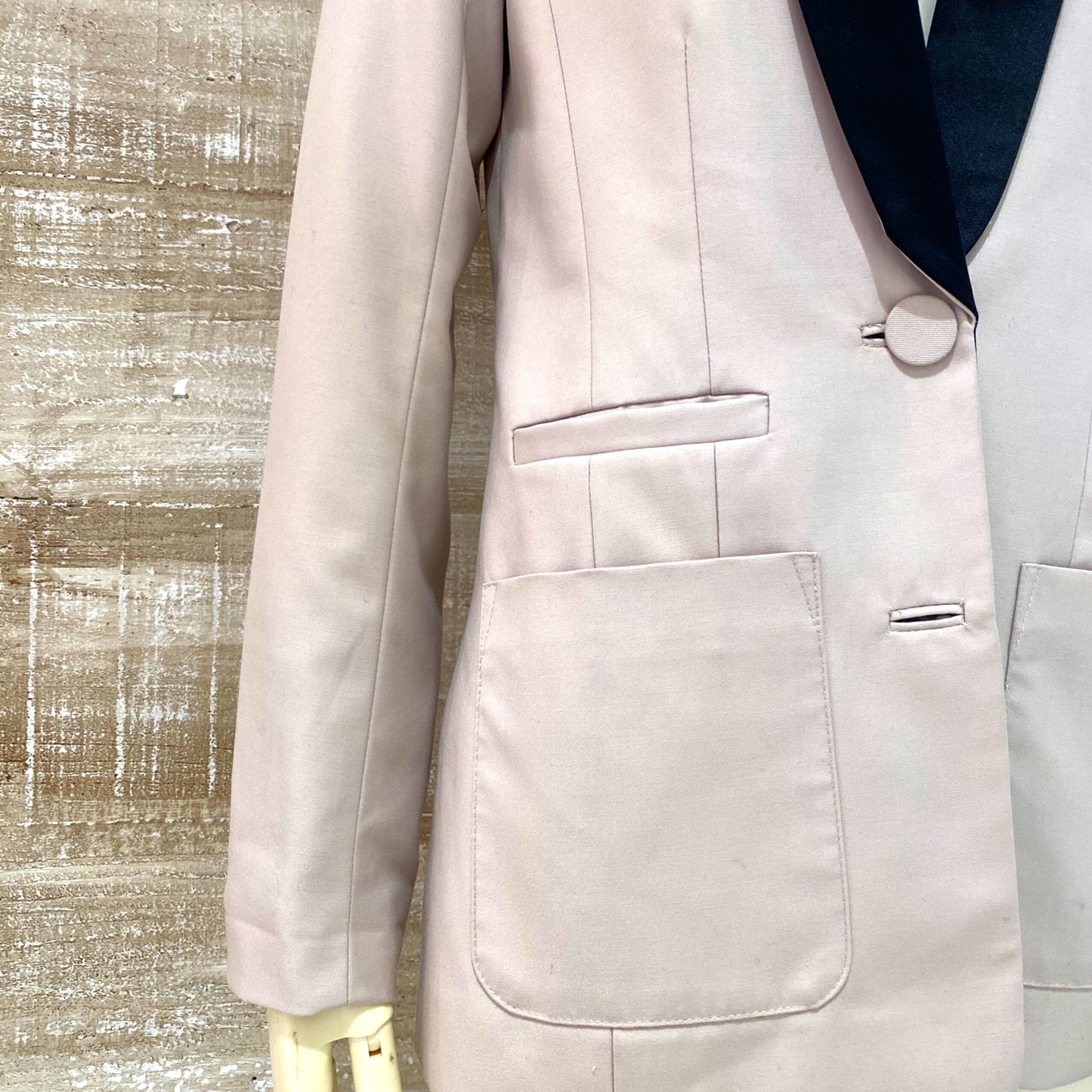 ピンクベージュにブラックのパイピングが効いたバイカラーのジャケット(古着).