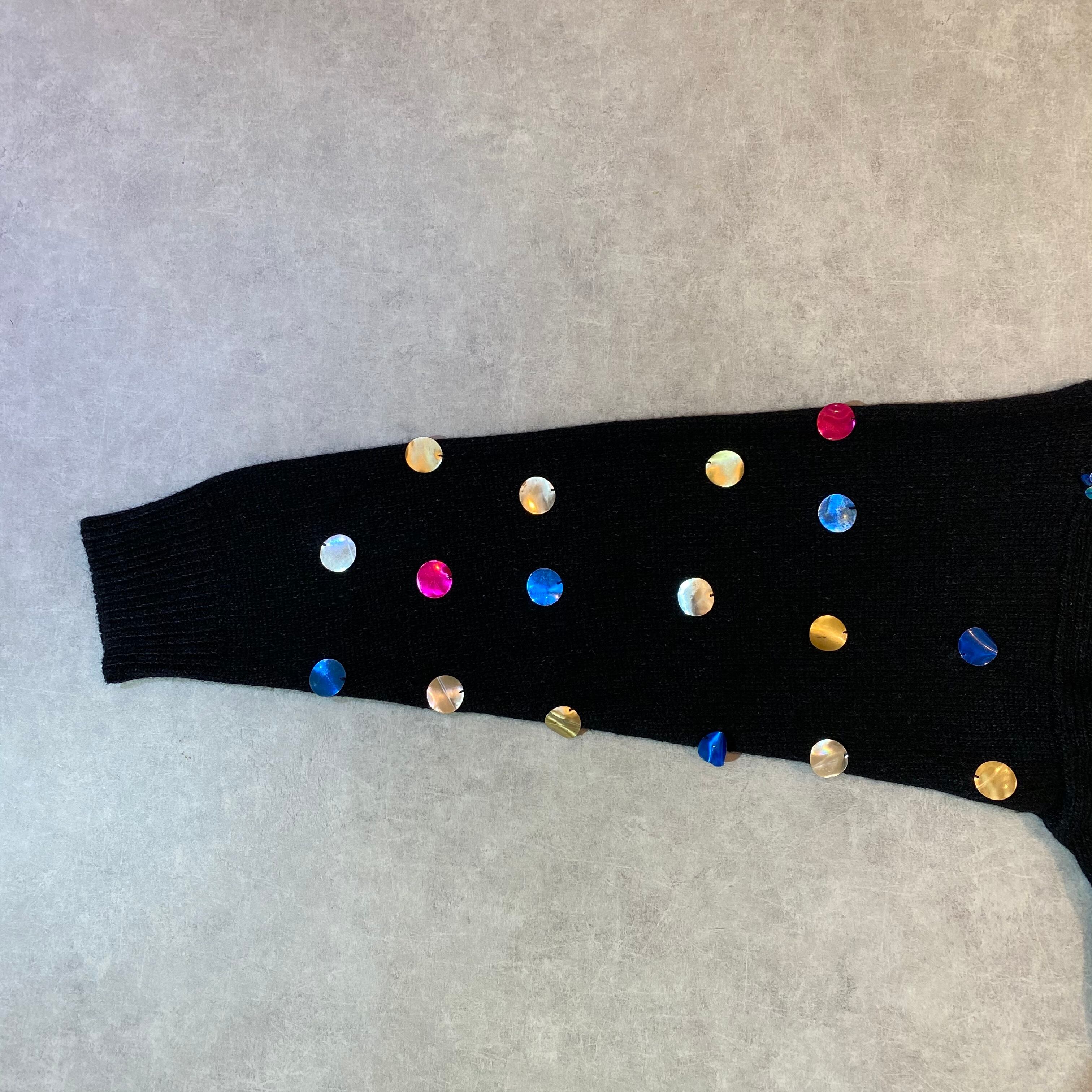 裏面は無地ですが、袖には両面に大粒スパンコールがあしらわれめちゃくちゃ可愛いニットです♡