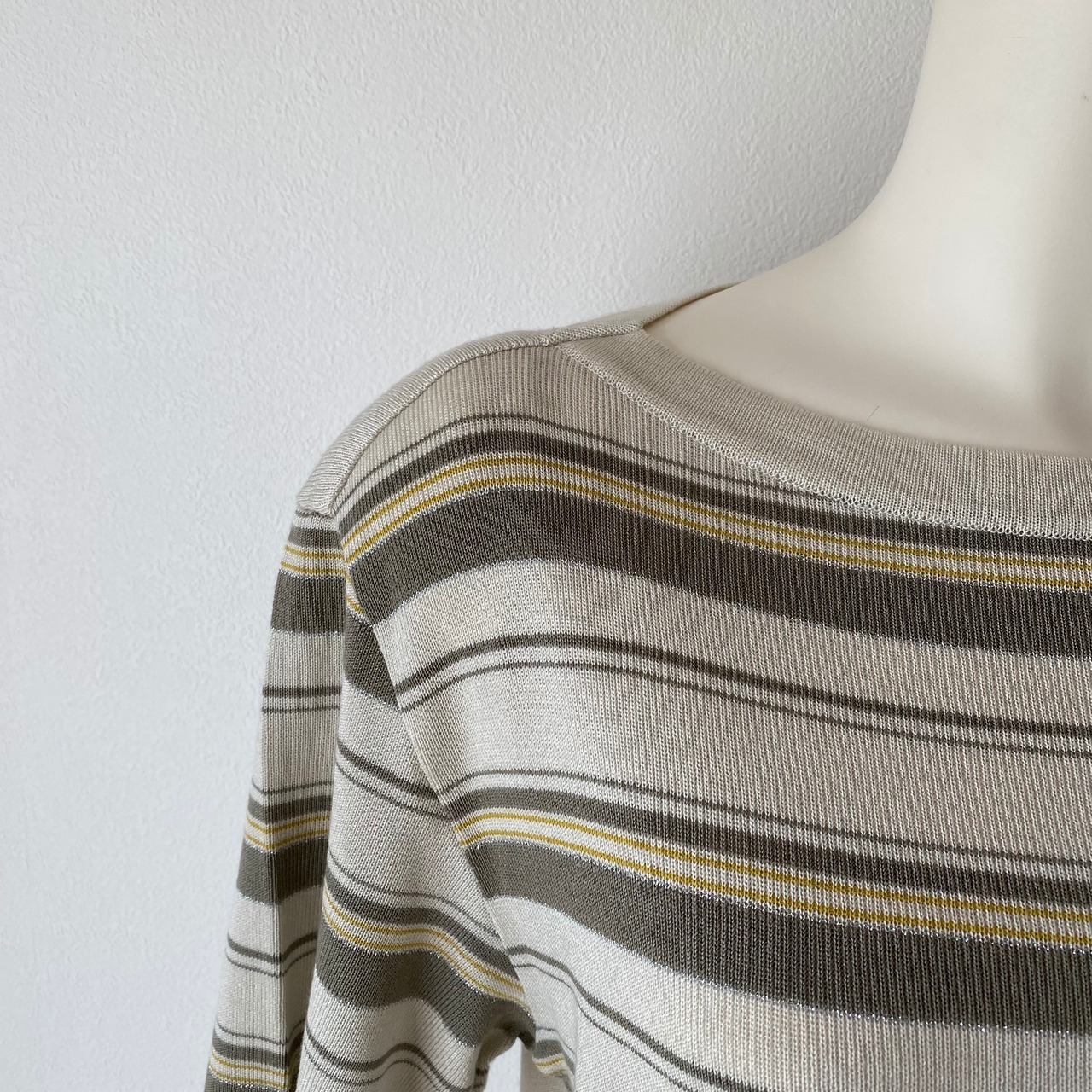 ボートネックの首元と